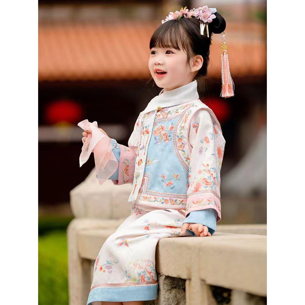 儿童清朝格格服夹棉古装 裙秋冬女童满族民族服饰古风公主旗袍唐装