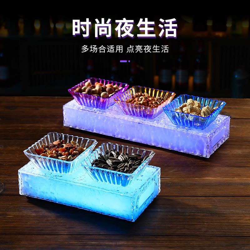 新品 酒吧KTV小吃碟水果盘架四六格果盘碟冰纹冰封亚克力发光分格