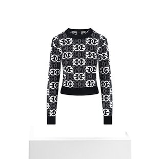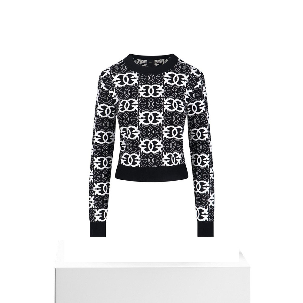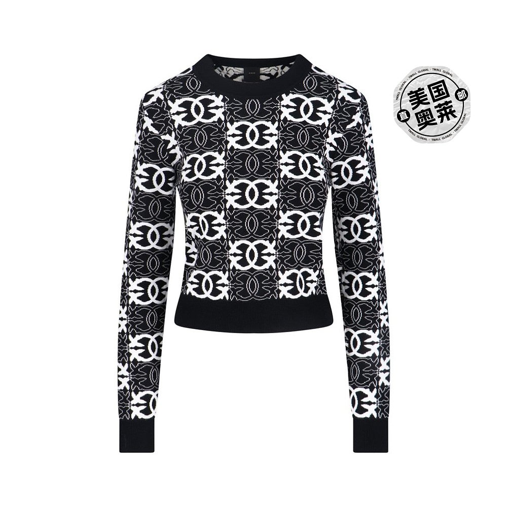 Knit Top With 自营pinkoLove Design Monogram Contrast Birds