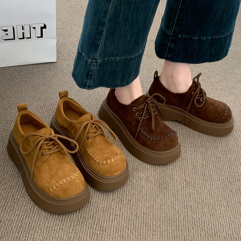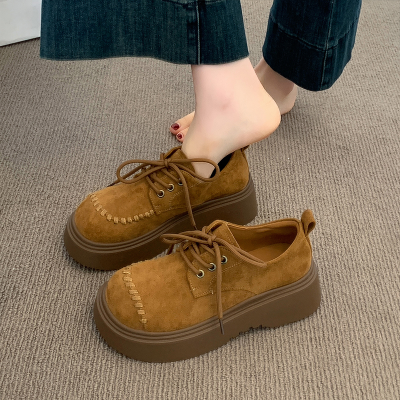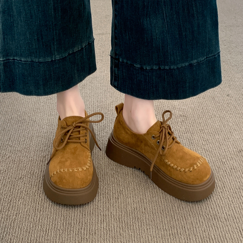 百搭轻便增高软底复古乐福鞋 秋季 系带 女2025新款 棕色厚底勃肯单鞋