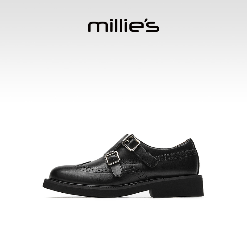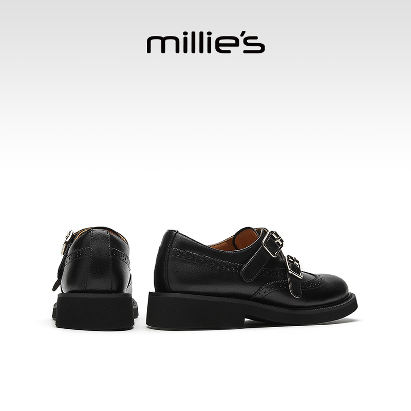 黑色布洛克女鞋 妙丽2025新款 女英伦风小皮鞋 真皮乐福鞋 MILLIE