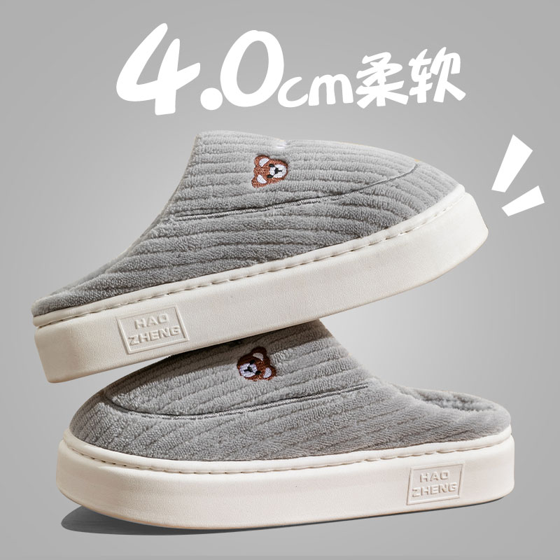 室内家居家防滑厚底踩屎感毛毛绒保暖情侣拖鞋 秋冬季 女 男士 棉拖鞋