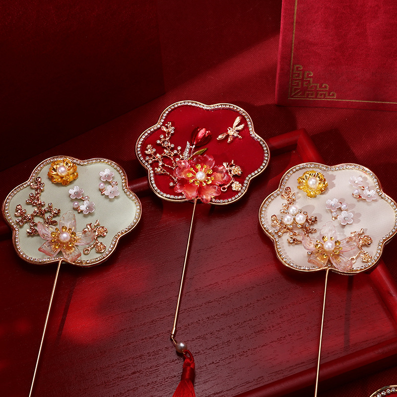 中式 秀禾扇子迷你巴掌扇古风旗袍拍照道具结婚用品伴娘新娘小团扇