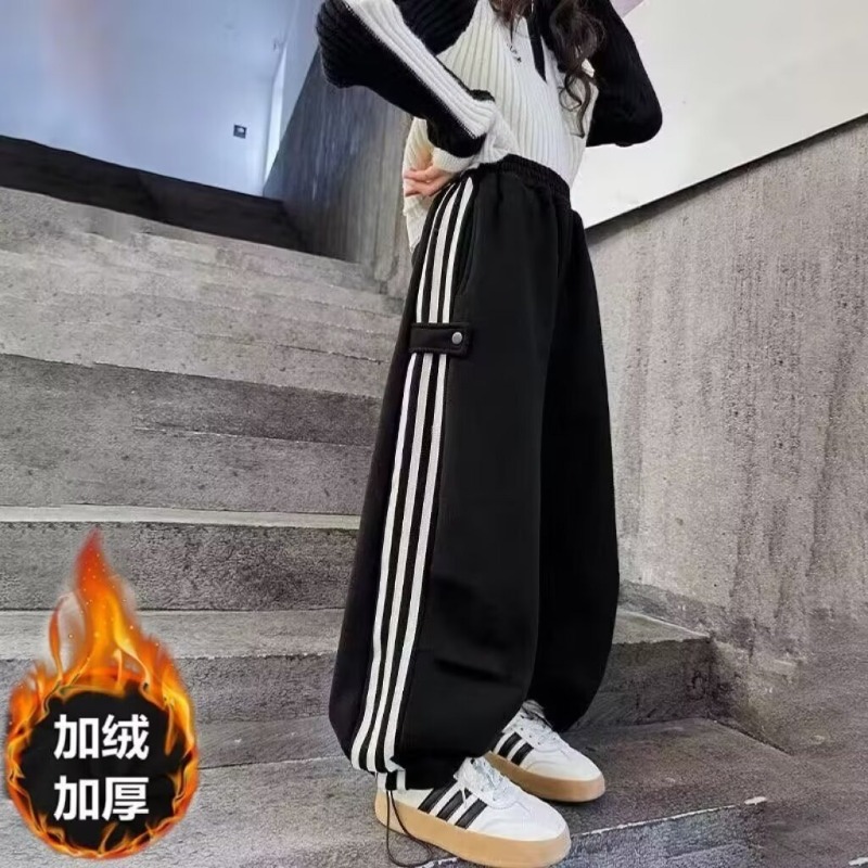 百搭宽松休闲哈伦裤 2025秋冬新款 子 女条纹拼接束脚运动裤 欧货卫裤