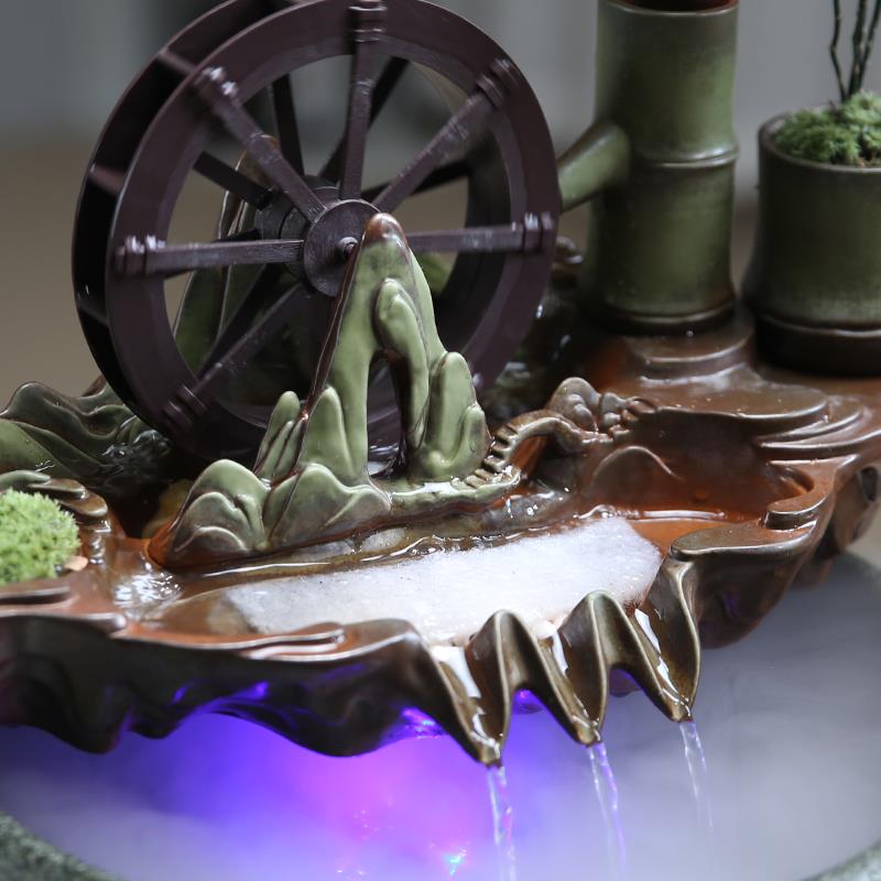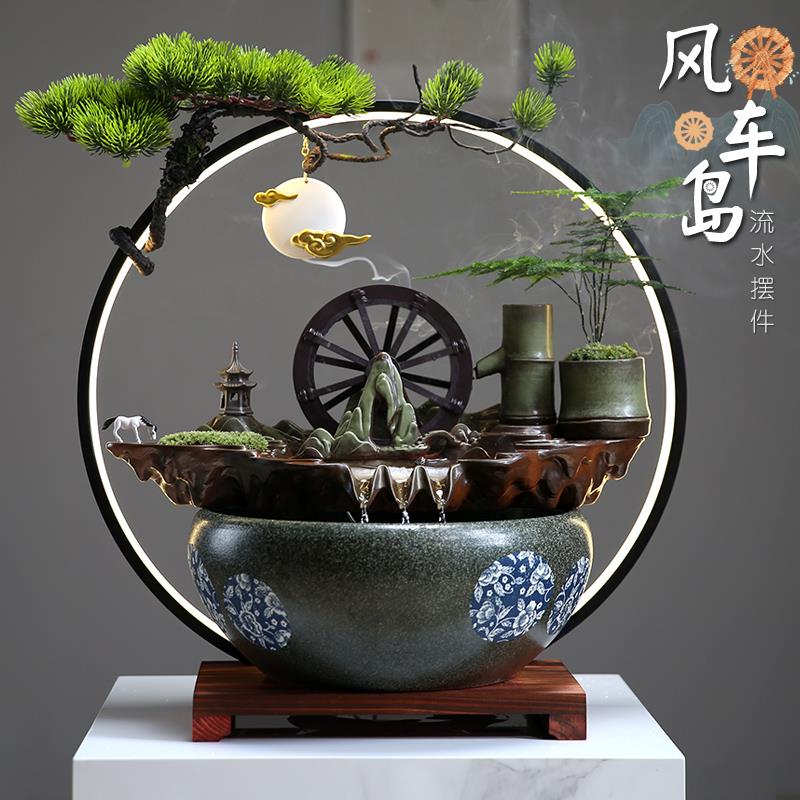 招财流水摆件循环水办公室开业礼物创意家居客厅装 饰玄关桌风水轮