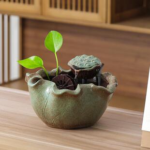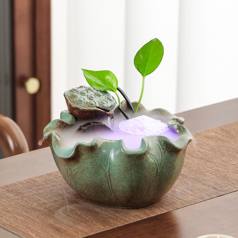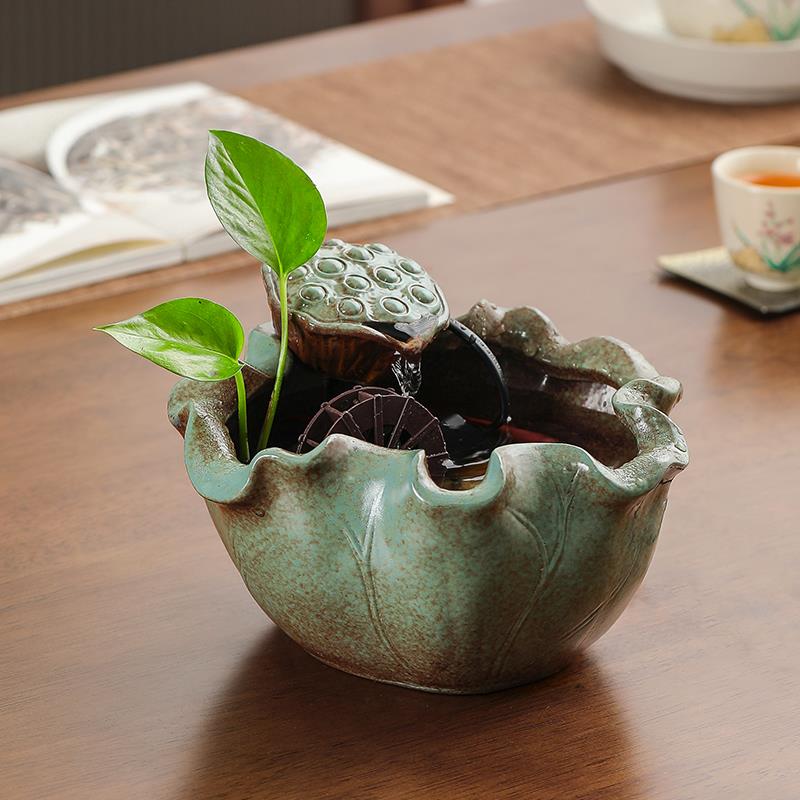 小型莲蓬流水摆件循环水景喷泉水车风水轮招财客厅办公室茶台装 饰