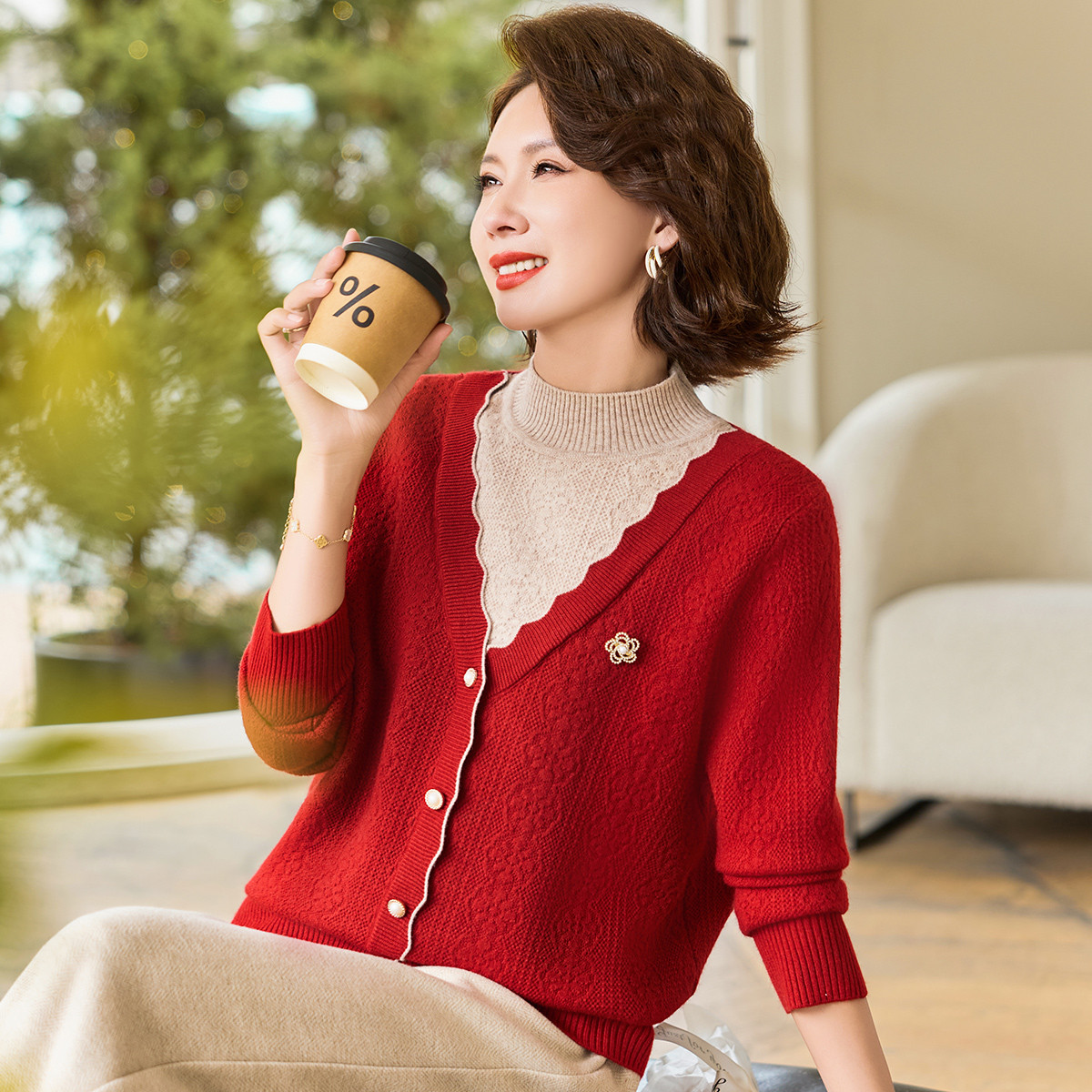 妈妈装 温柔小香风气质假两件针织套装 中老年毛衣 新款 2025冬装