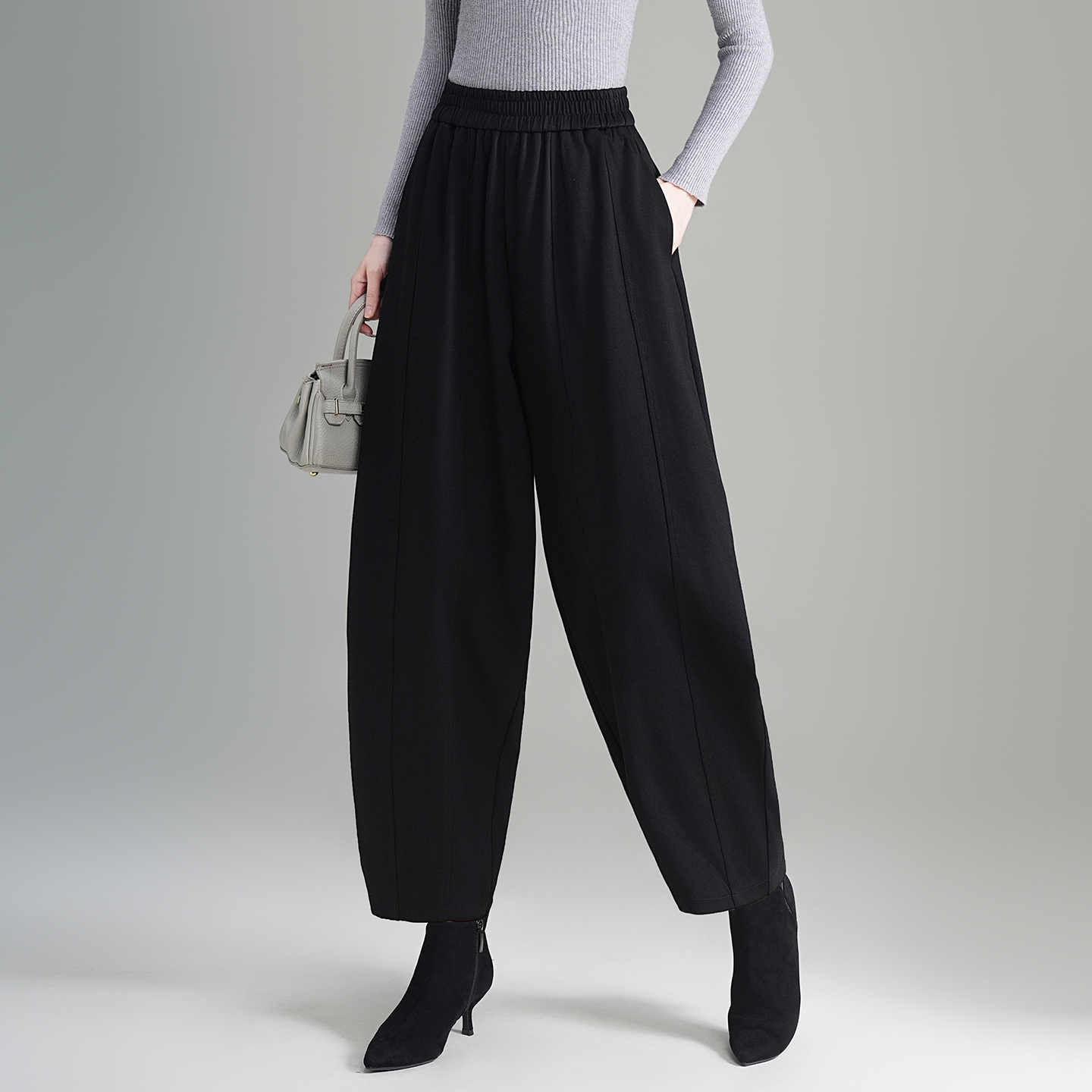九分裤 子休闲灯笼裤 女秋冬2025加厚高腰宽松肥腿裤 黑色阔腿哈伦裤