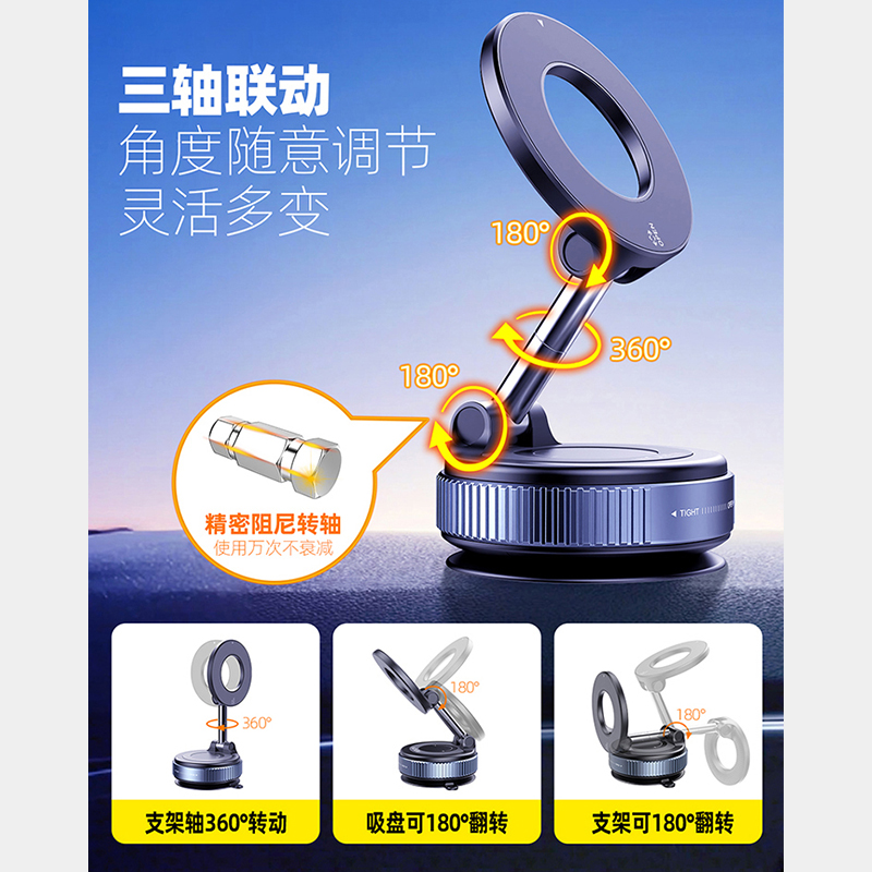真空吸附磁吸车载手机支架2025款 吸盘车内多功能汽车固定手机支架