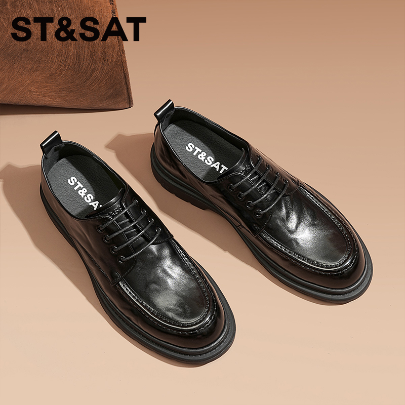 皮鞋 褶皱厚底增高年轻德比鞋 春秋新款 商务休闲皮鞋 男鞋 星期六男士