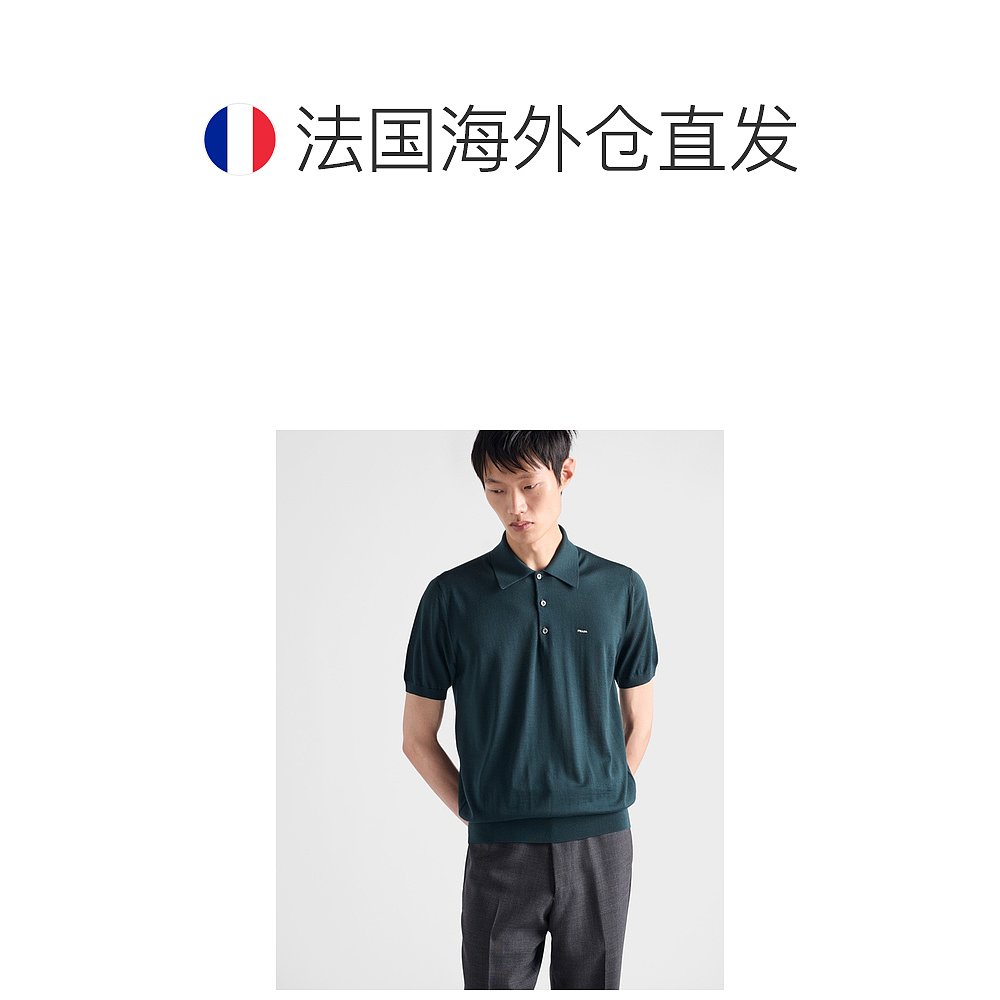Polo衫 瓶绿色羊毛刺绣logo标识短袖 男士 自营欧洲直邮Prada普拉达