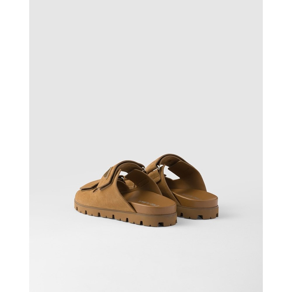 肉桂棕小牛皮金属三角标识凉鞋 自营欧洲直邮Prada普拉达 男士