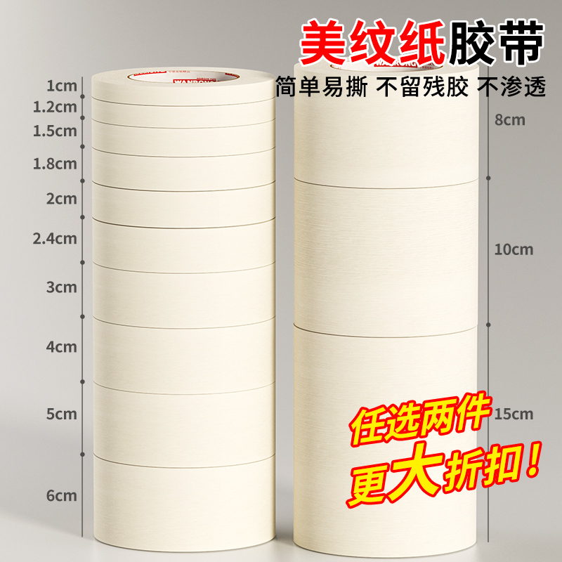 皖荣美纹纸胶带整箱批发中粘美文胶美术生贴纸外墙真石漆专用美纹纸喷漆遮蔽墙面无痕胶布不留胶美缝白分色纸
