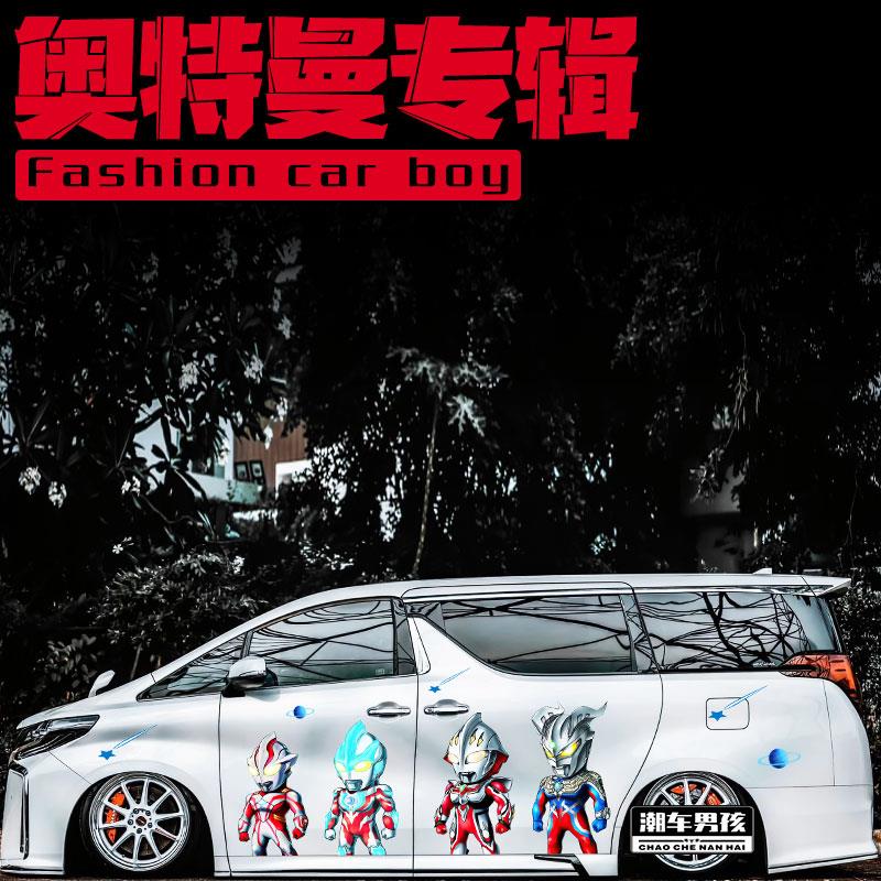 个性 接孩子放学埃尔法 汽车两侧卡通贴纸 奥特曼车贴 创意定制 Q版