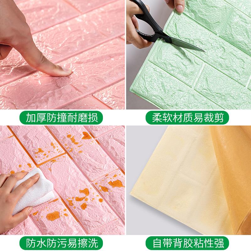 壁纸自粘3d立体壁贴卧室温馨装 饰背景墙面壁纸泡沫砖防水防潮贴纸