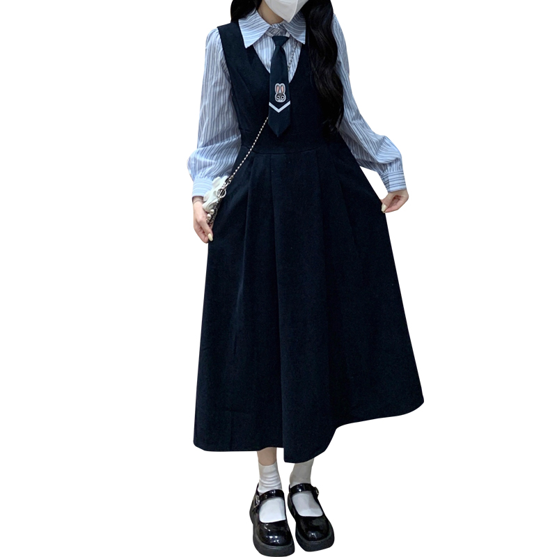 初中高中学生学院风洋装 抱婴袋长裙两件式 2025新款 少女春秋装 套装