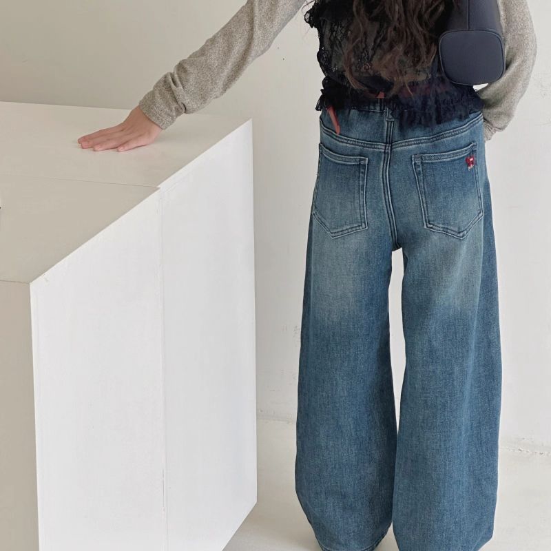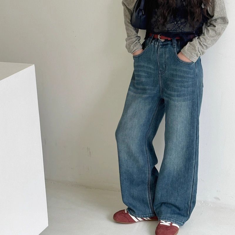 春秋款 女童牛仔裤 中大童裤 子窄版 潮阔腿 童装 显瘦直筒裤 儿童烟管裤