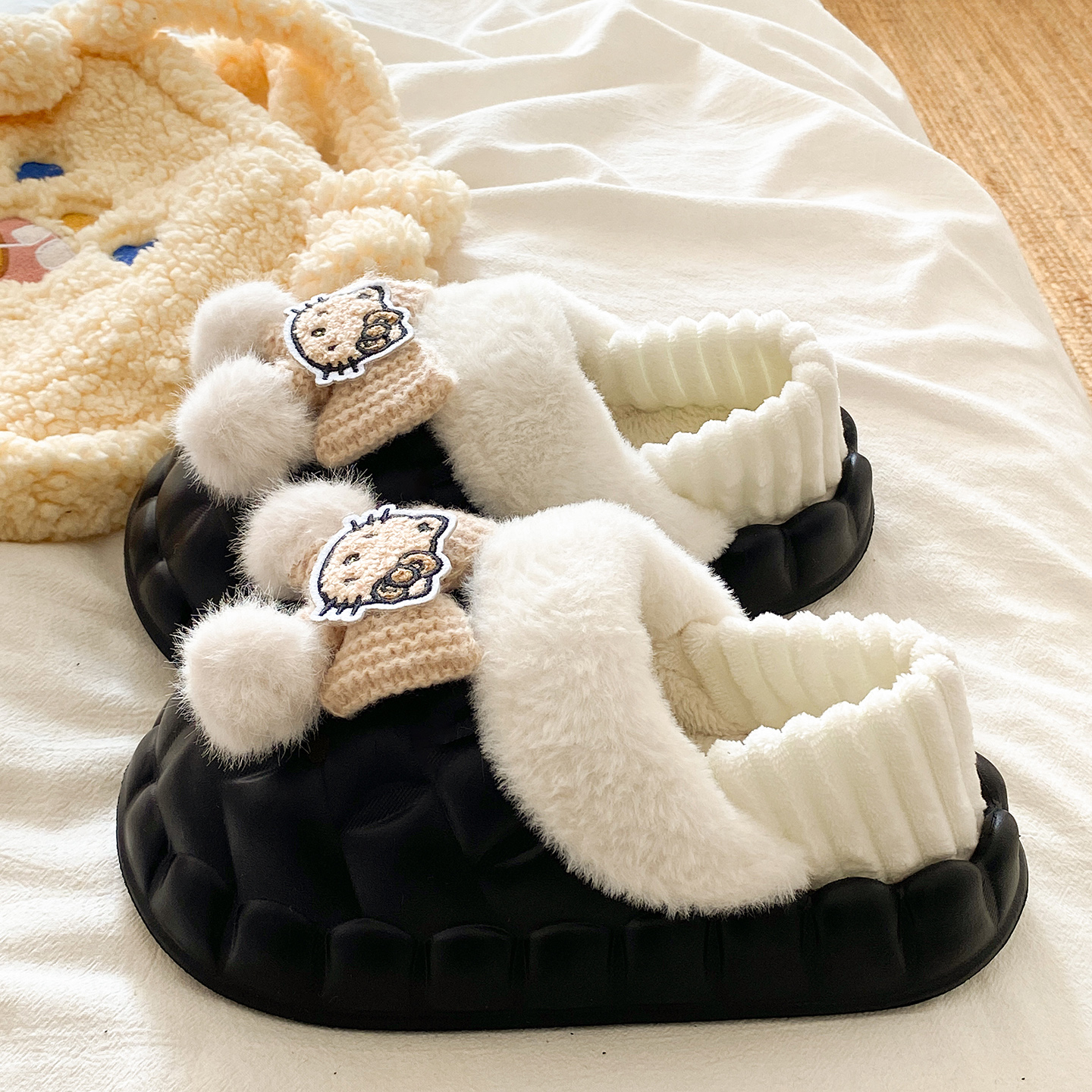 室内外穿厚底可拆卸加绒保暖包跟棉鞋 新款 女士冬季 可爱kt猫棉拖鞋