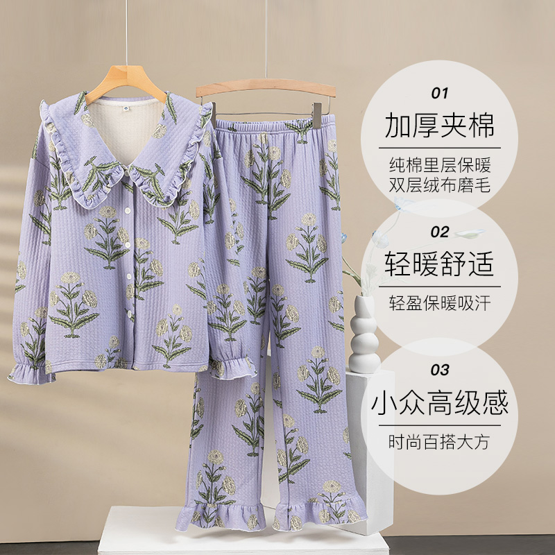 toratani加厚夹棉双层绒布磨毛温暖花卉女士家居服睡衣 自营