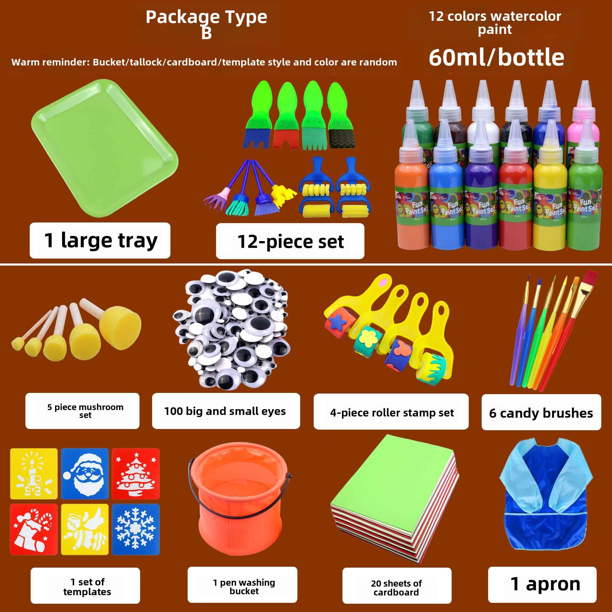 儿童DIY绘画材料集水彩水粉颜料艺术海绵刷摩擦工具绘画涂鸦