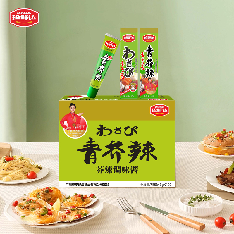 珍鲜达青芥辣43g辣根芥末膏芥末酱海鲜寿司刺身烧烤呛辣盒装 商用