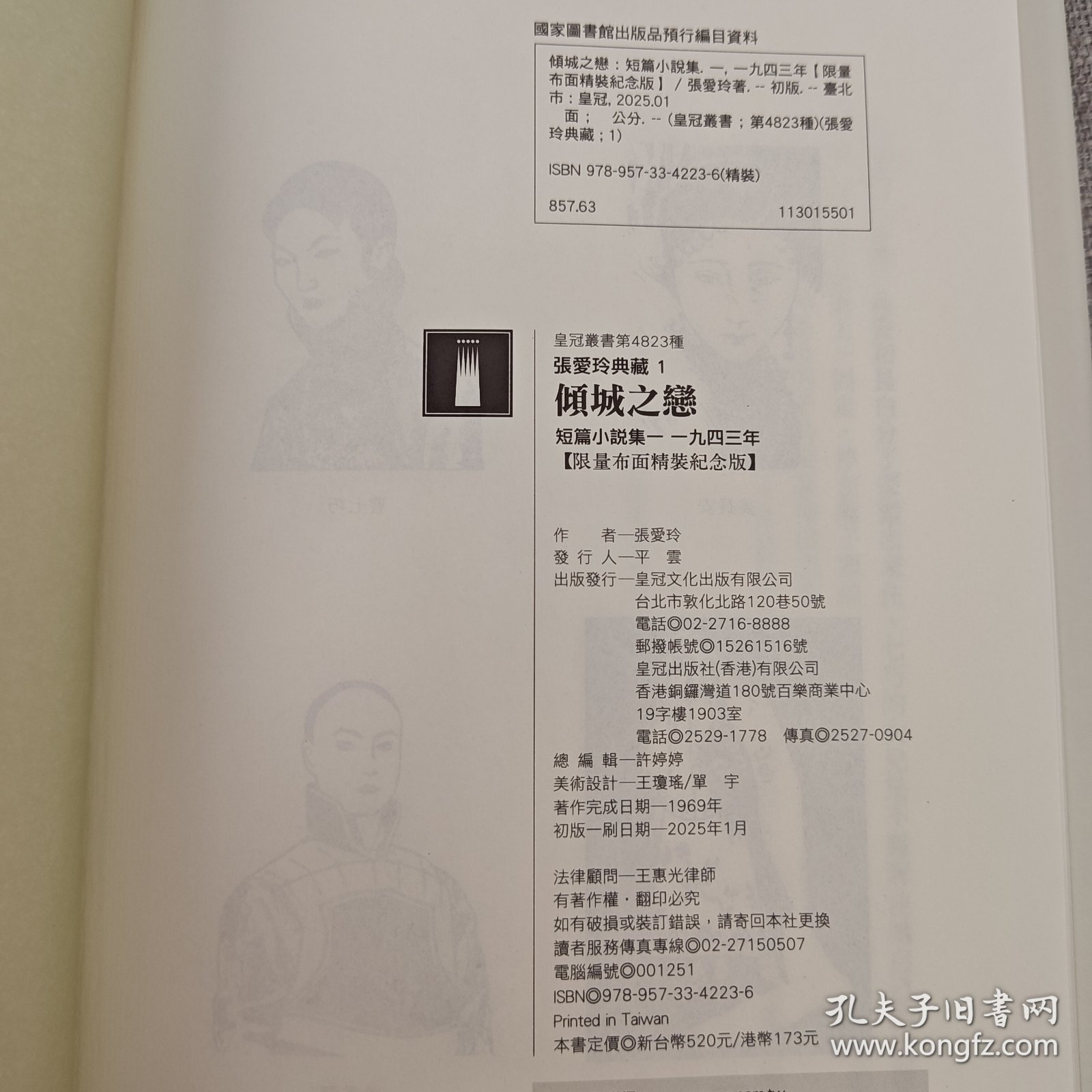 ·台湾皇冠社原出版 傾城之戀 一印 港台原版 25年全新再版 正版 16开 毛边编号 1969 现货 一版 ·布面精装 张爱玲百岁诞辰纪念版