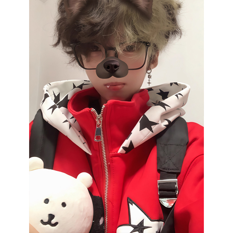 韩系chic秋冬粉色连帽卫衣女V领潮ins大码 慵懒风上衣 假两件打底衫