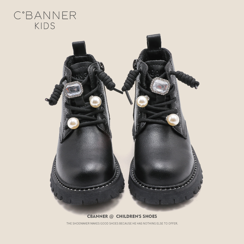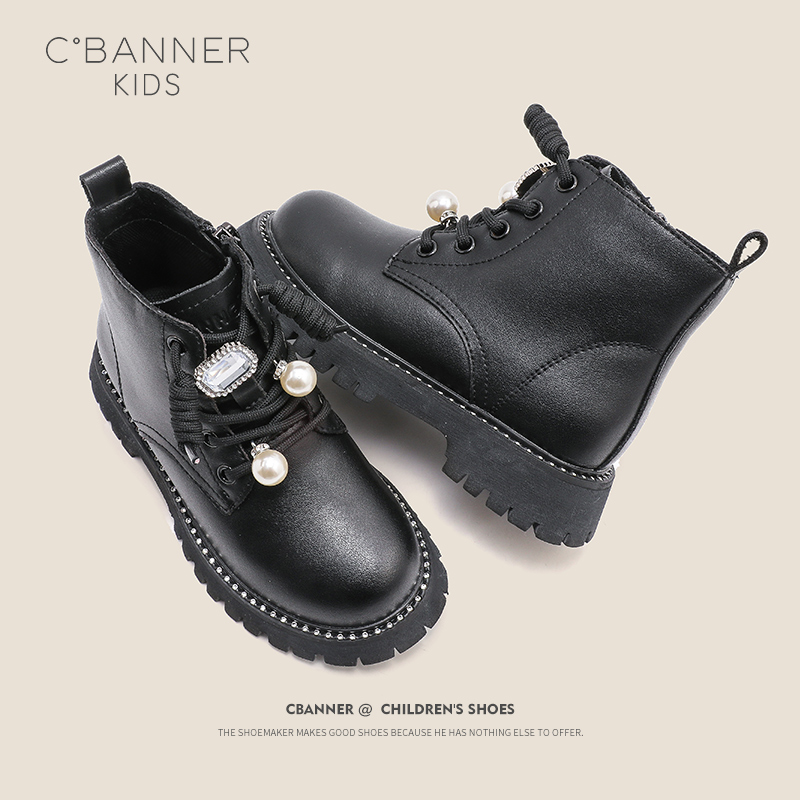 女童短靴 儿童马丁靴百搭水钻公主靴英伦风时尚 千百度2025秋季 新款