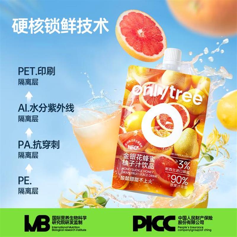 速发OnlyTree金银花蜂蜜柚子汁进口蜂蜜NFC果蔬鲜榨饮料