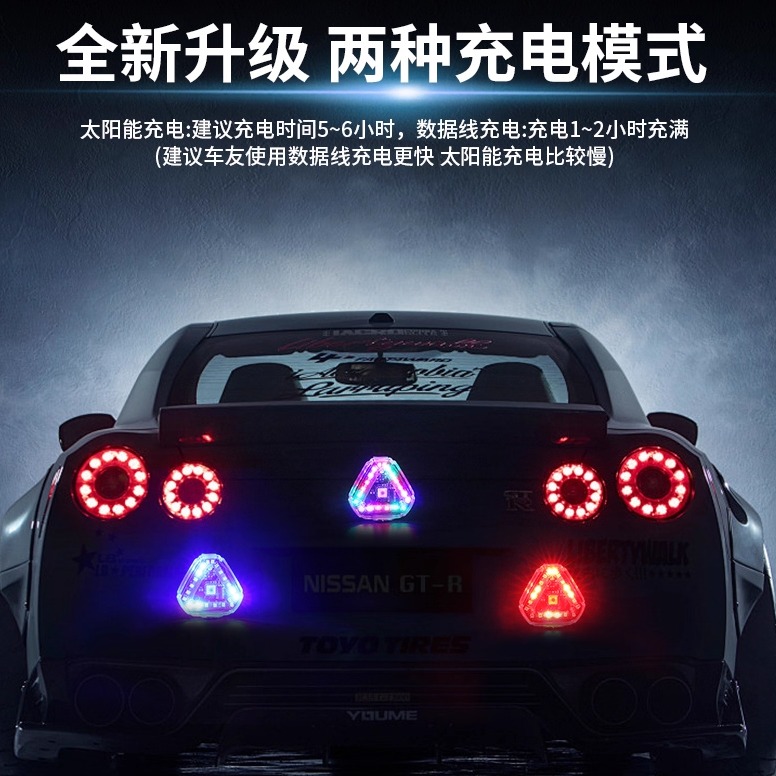 汽车防追尾太阳能警示爆闪灯摩托车电动车货车led尾灯免接线改装