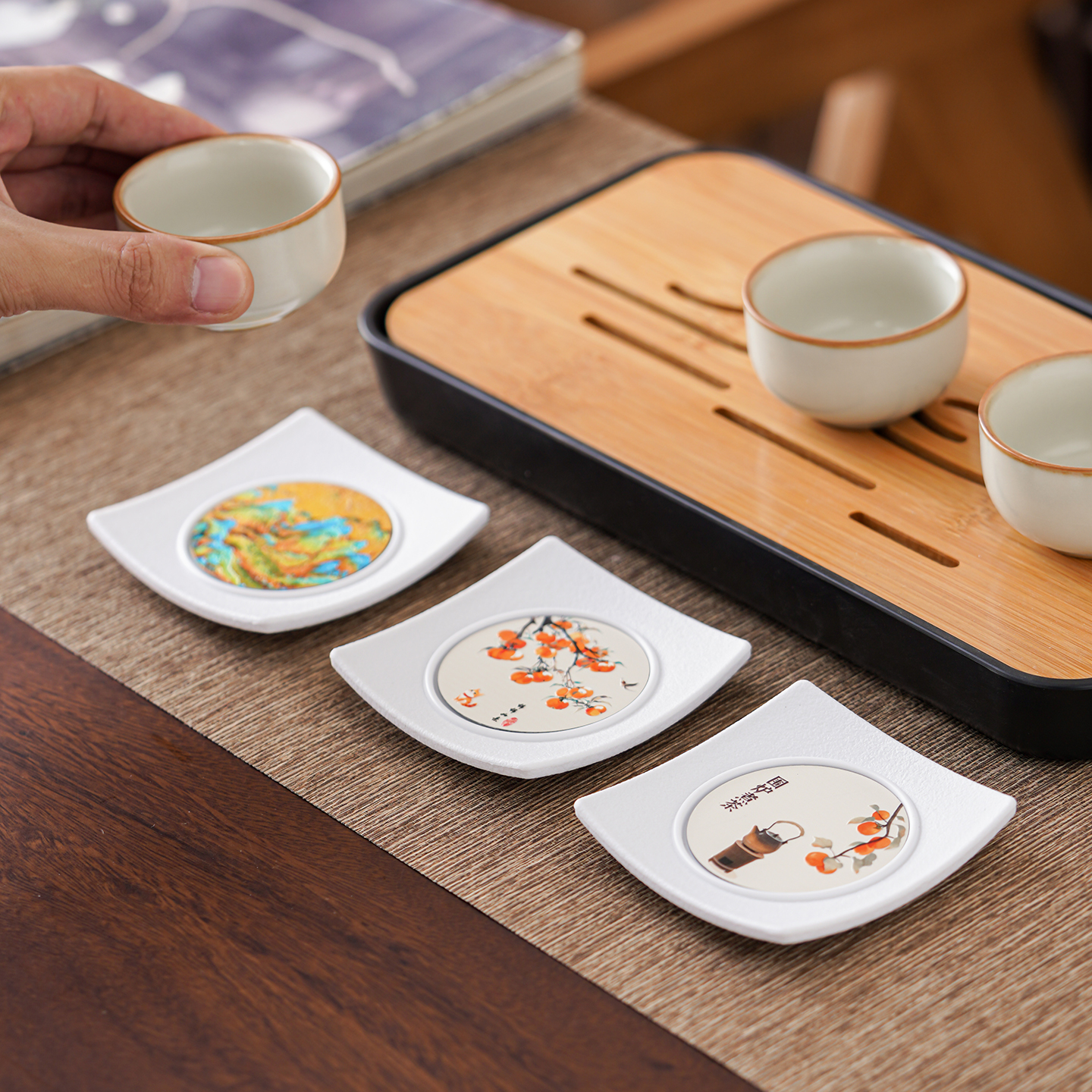 晟窑家用茶杯垫防烫翘边杯托中式 茶道隔热垫茶杯托茶碟子茶具配件