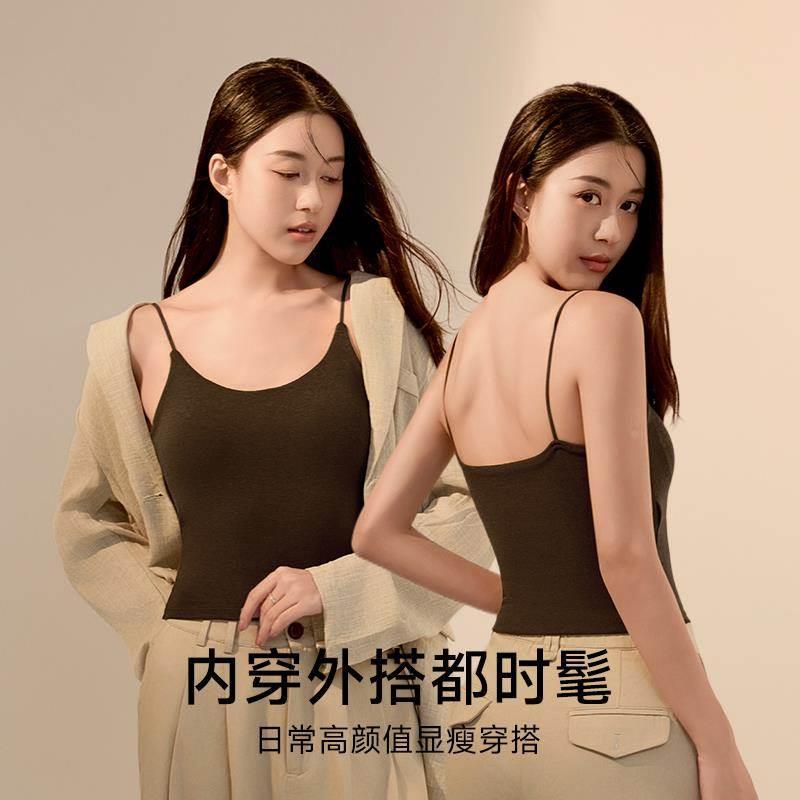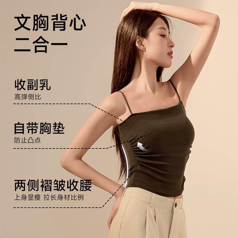 细肩带保暖小吊带背心女内衣2025新款 秋冬内搭褶皱收腰带胸垫打底