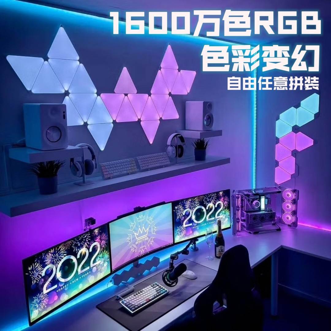 电竞房rgb智能三角形奇光板量子灯直播间墙面装 饰壁灯拾音氛围灯