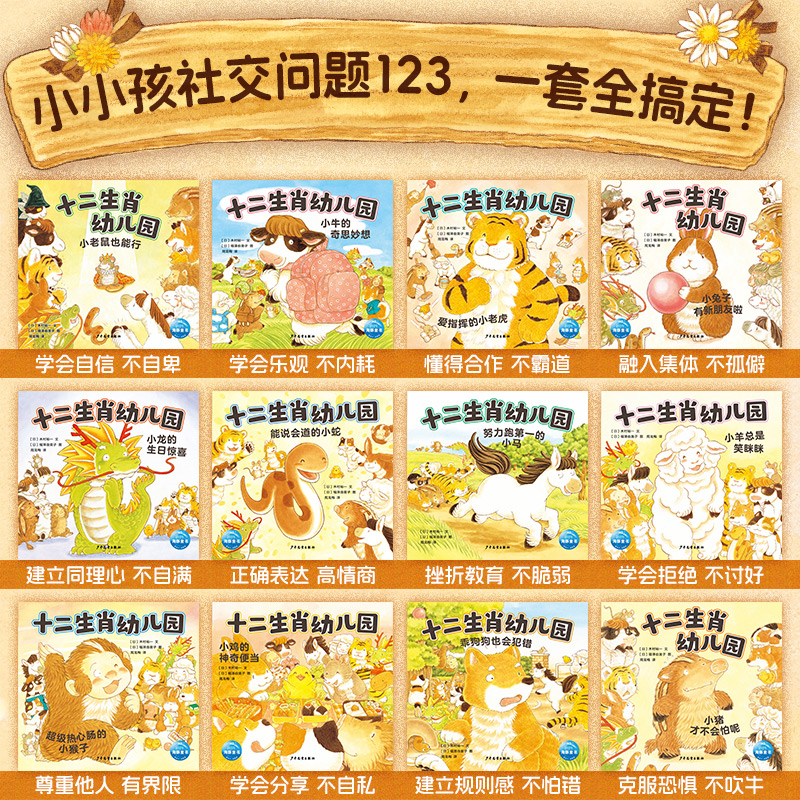 4岁幼儿园入园准备社交第一课交朋友分享合作建立自信温暖治愈拉页镂空翻翻机关书 十二生肖幼儿园绘本全12册平装 宝宝绘本2