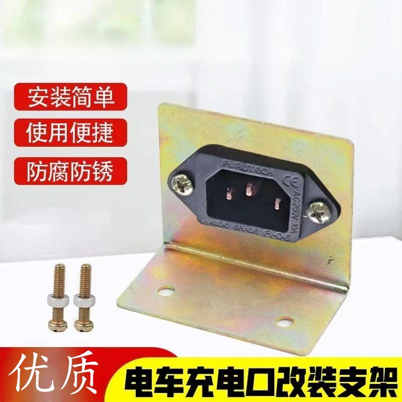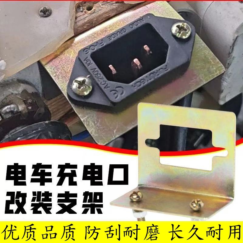 电动车充电插座支架改装 通用充电插孔固定支架定 充电口固定片加装