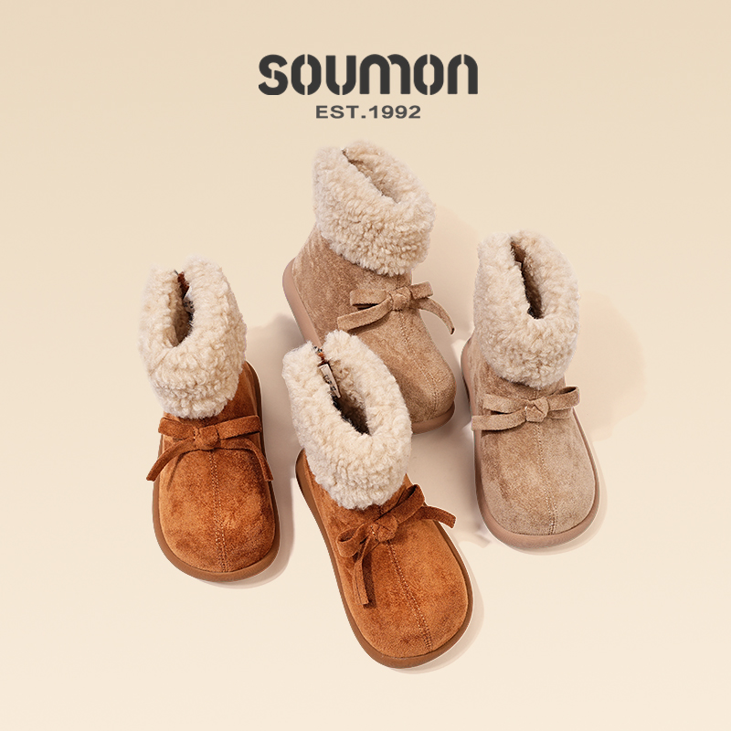 844834 加绒加厚保暖厚底圆头女毛毛鞋 三福雪地靴女冬季 2025新款