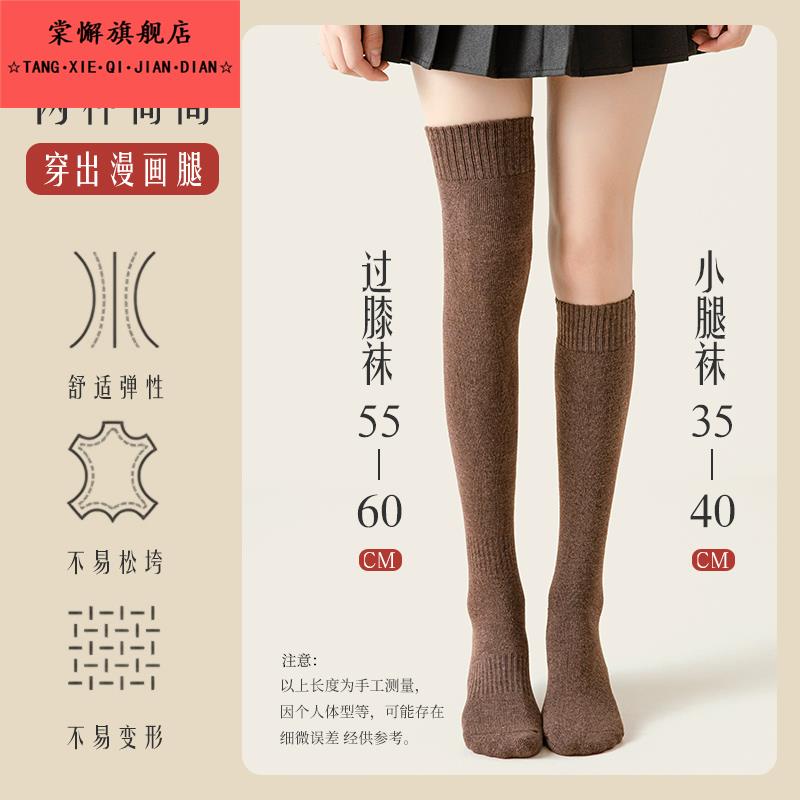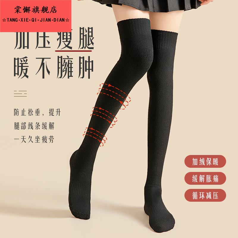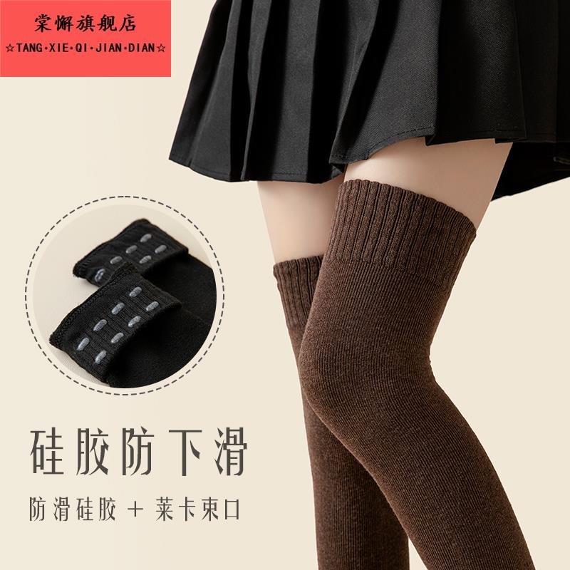 防滑过膝长筒袜女秋冬季 加绒加厚保暖纯棉底加长大腿袜冬天小腿袜