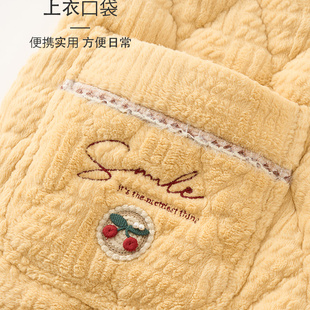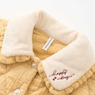 芬腾女时尚 三层夹棉珊瑚绒保暖家居服提花高级感棉袄 高档睡衣冬季