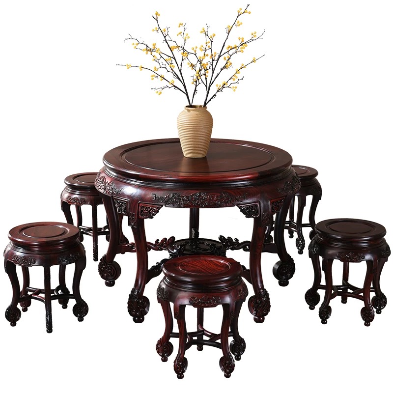大红酸枝红木家具家用圆桌中式 实木饭桌古典餐桌椅交趾黄檀全实木