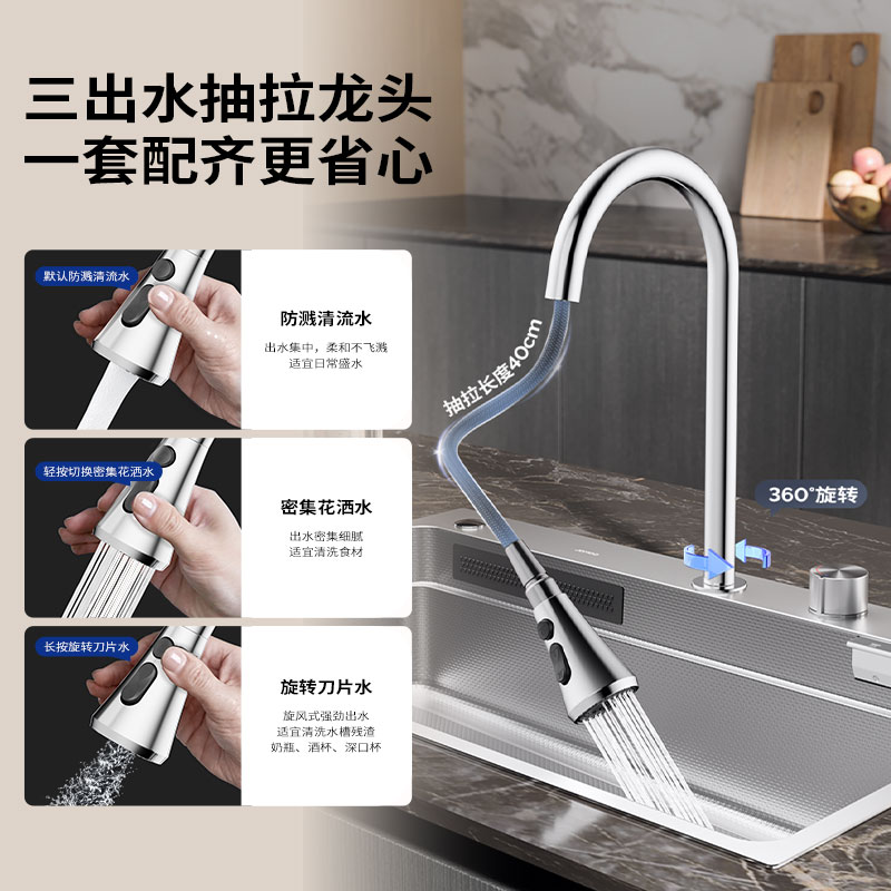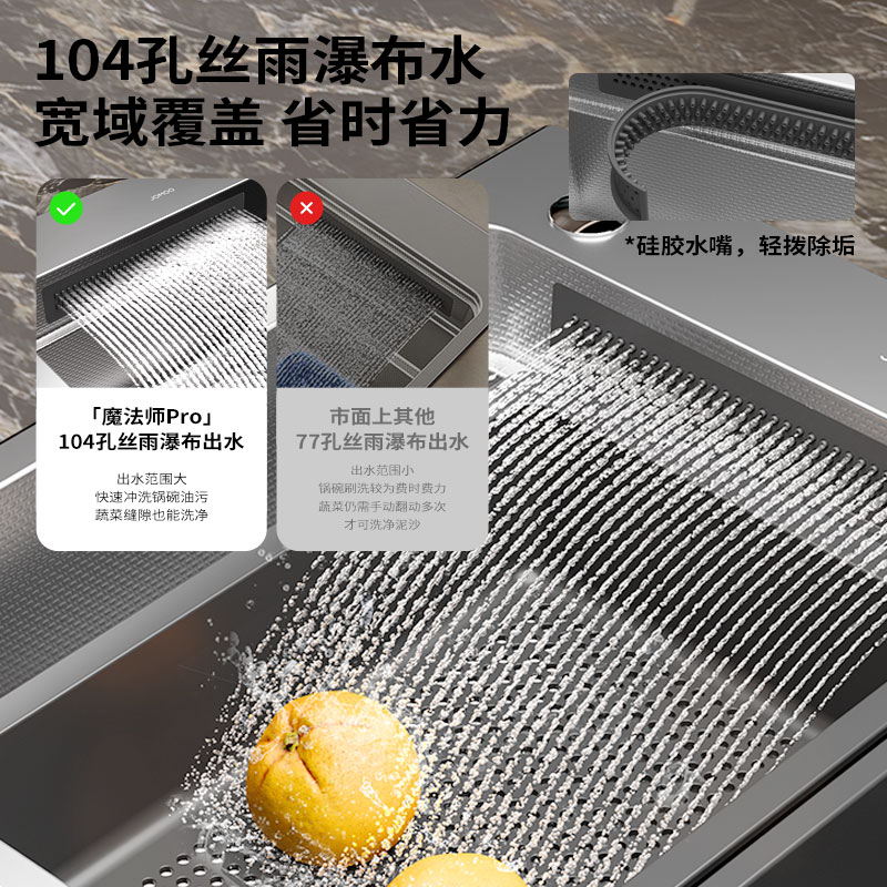 悍高厨房纳米石纹水槽手工单槽304不锈钢洗菜盆洗碗盆大单盆套餐