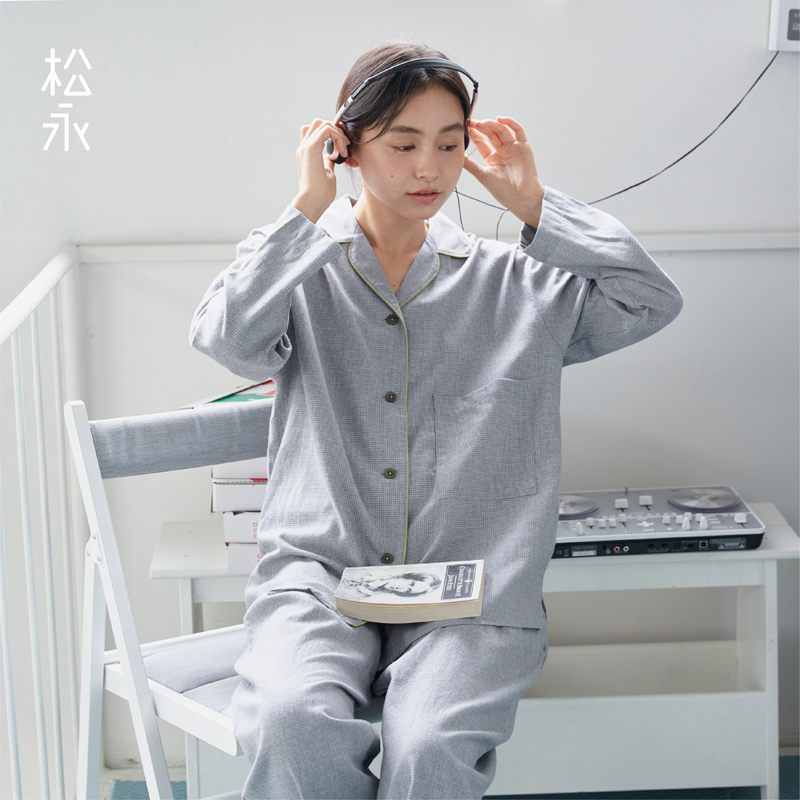 绒布柔软简约家居服套装 长裤 秋冬男女情侣纯棉睡衣长袖 松永新款