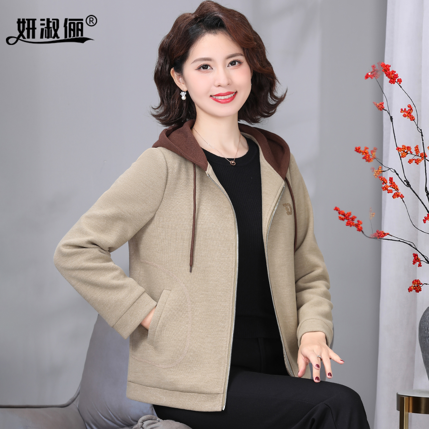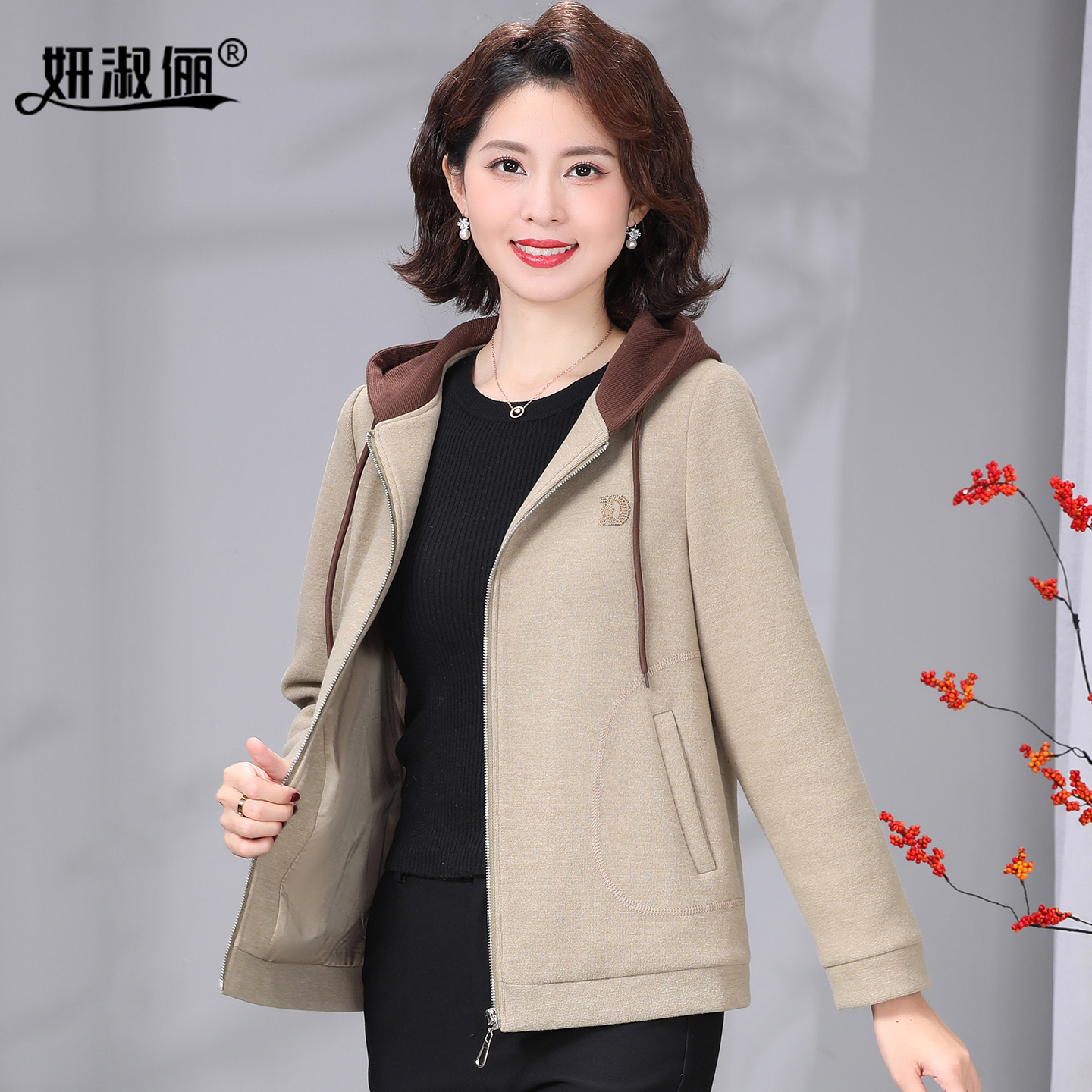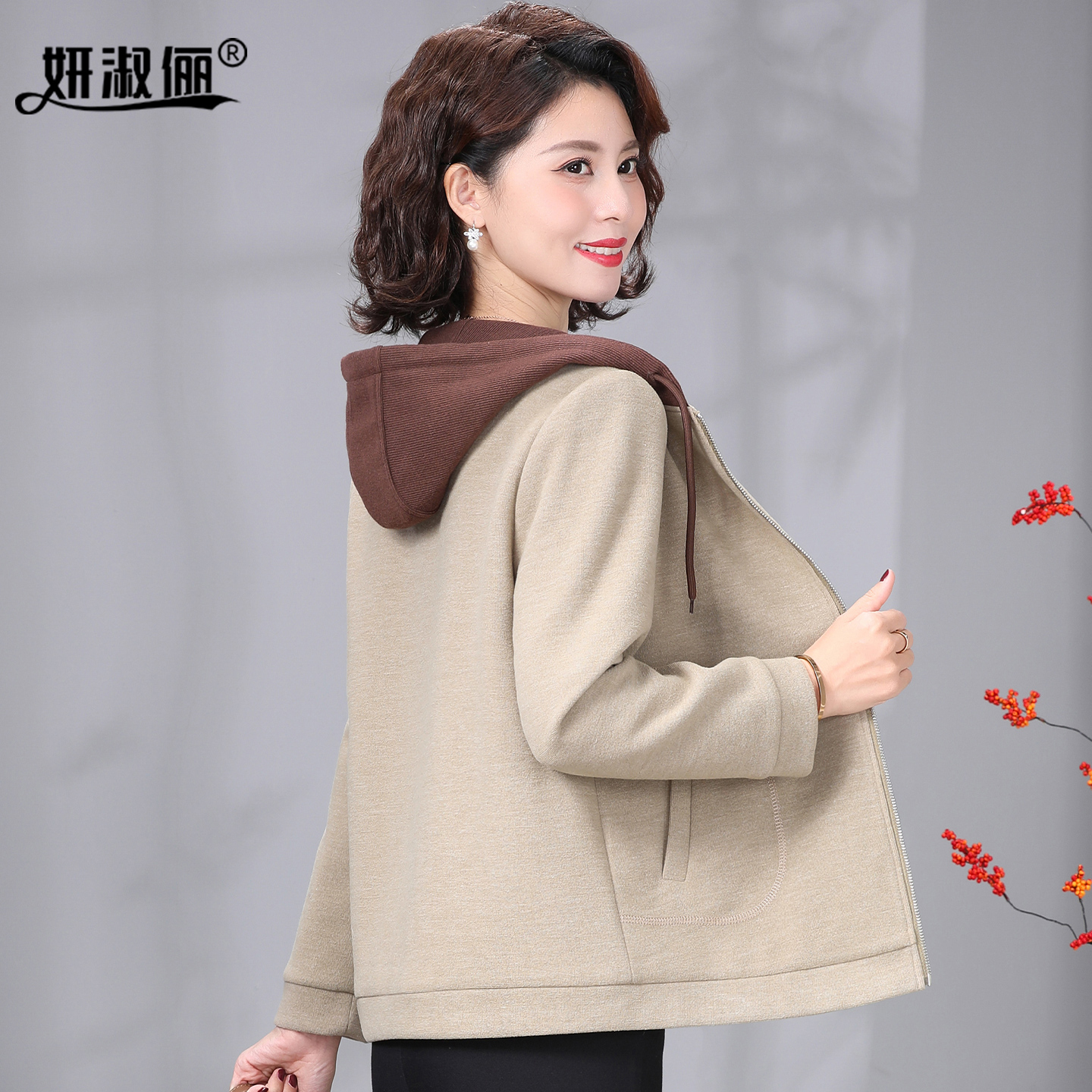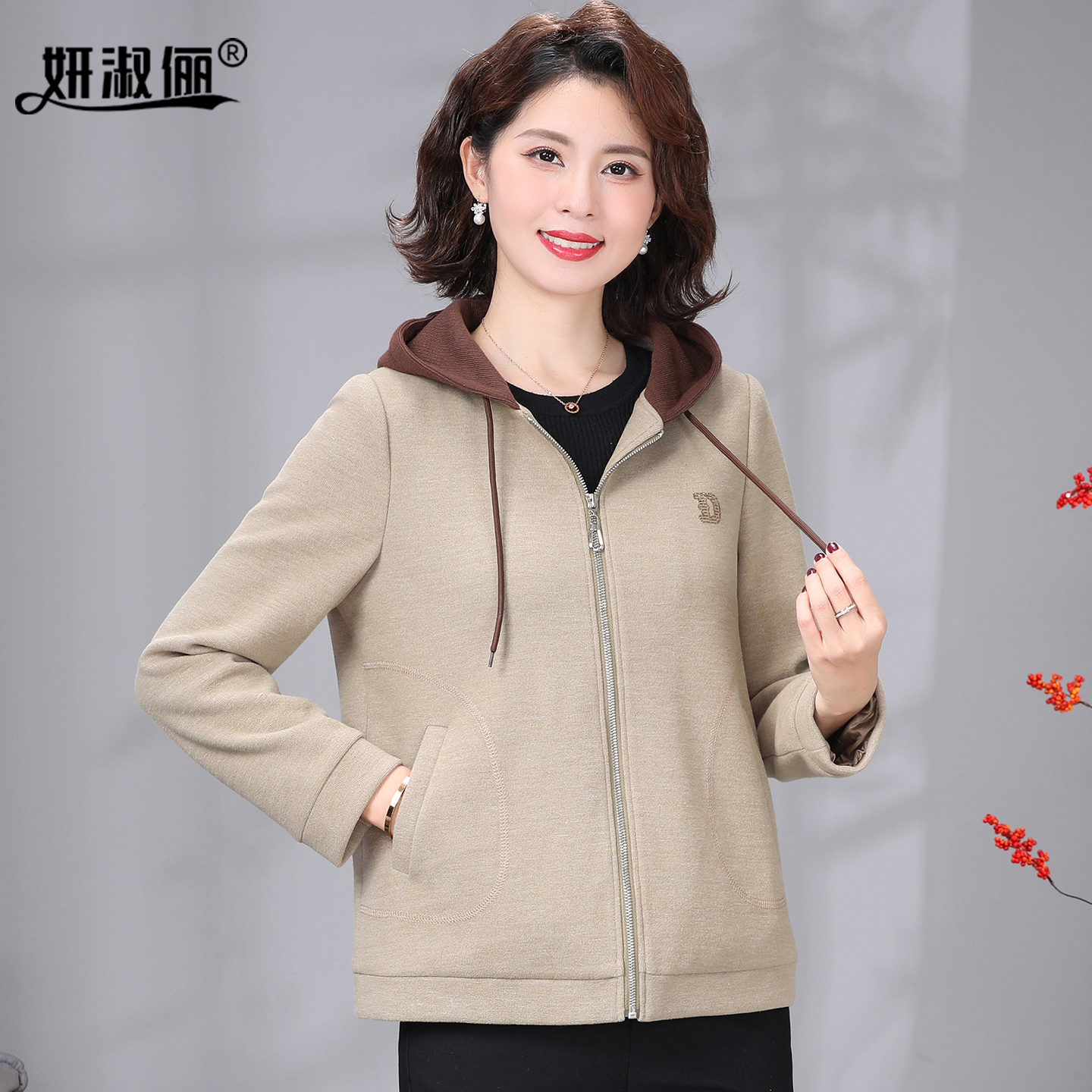 2025新款 外套毛呢春秋装 妈妈高贵洋气加厚连帽风衣 短款 中老年女装