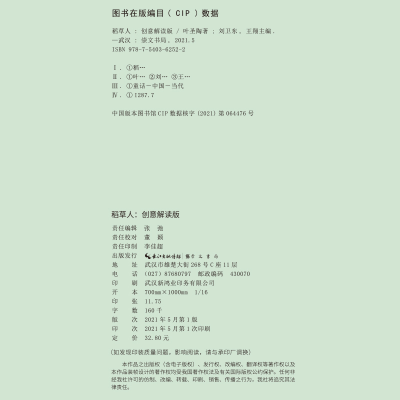 新华书店正版 稻草人 原湖北辞书 叶圣陶中学教辅崇文书局 创意解读版