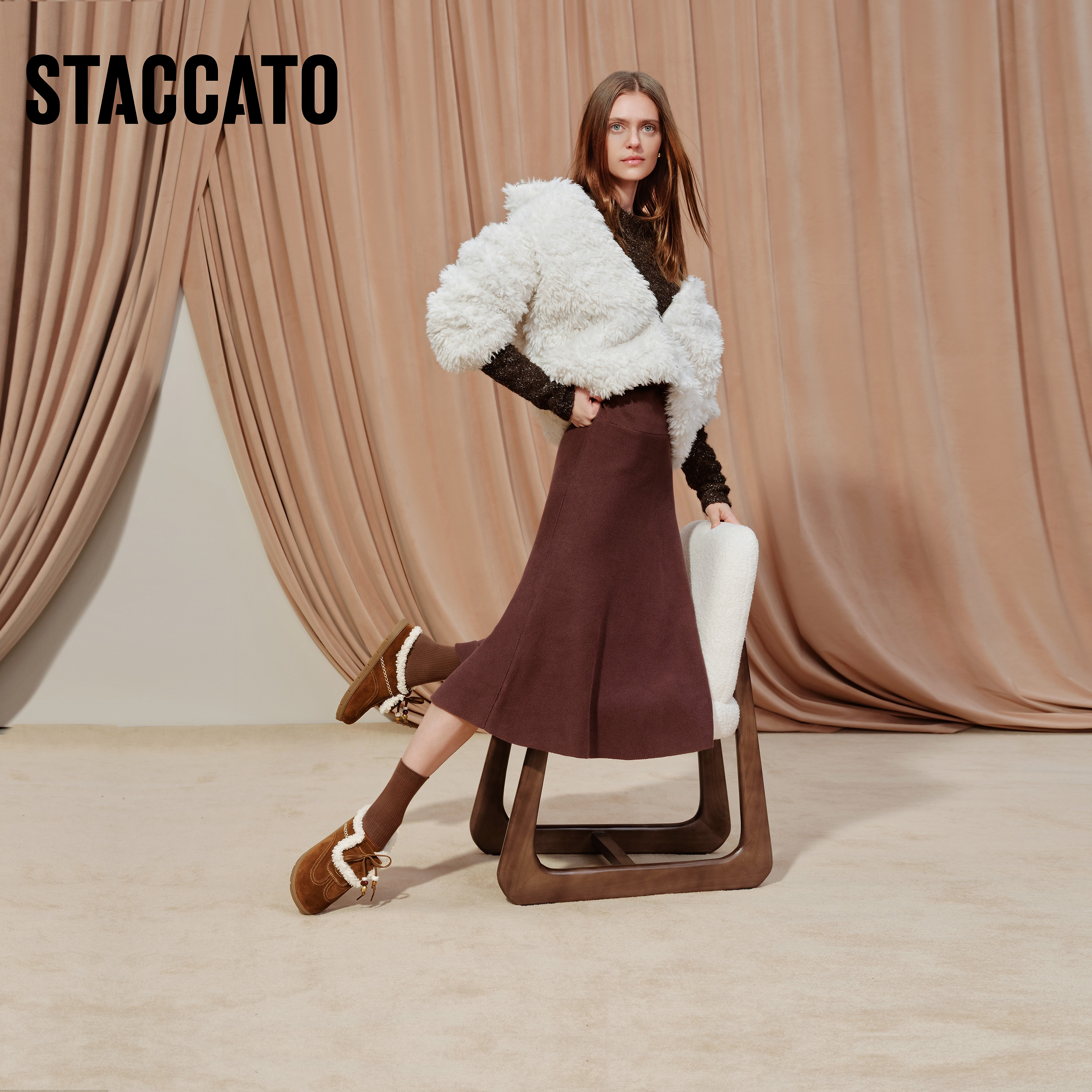 厚底加绒半拖鞋 大头鞋 女EIM02DH5 雪绒绒复古勃肯鞋 思加图2025新款