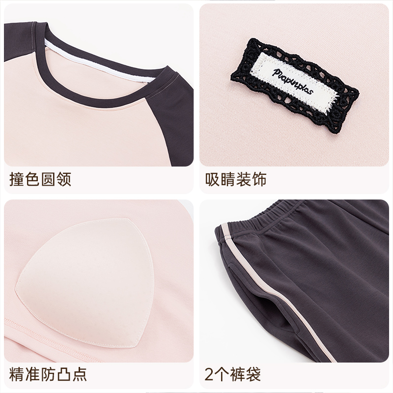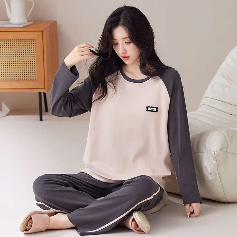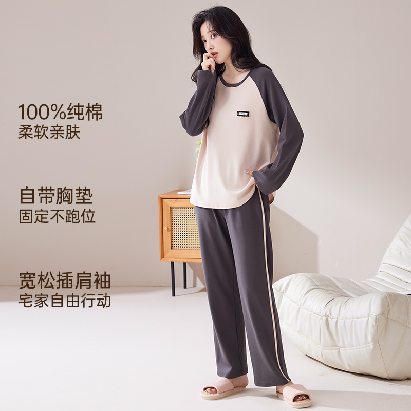 大码 纯棉睡衣女带胸垫2025春秋新款 套装 长裤 女士家居服 可外穿长袖