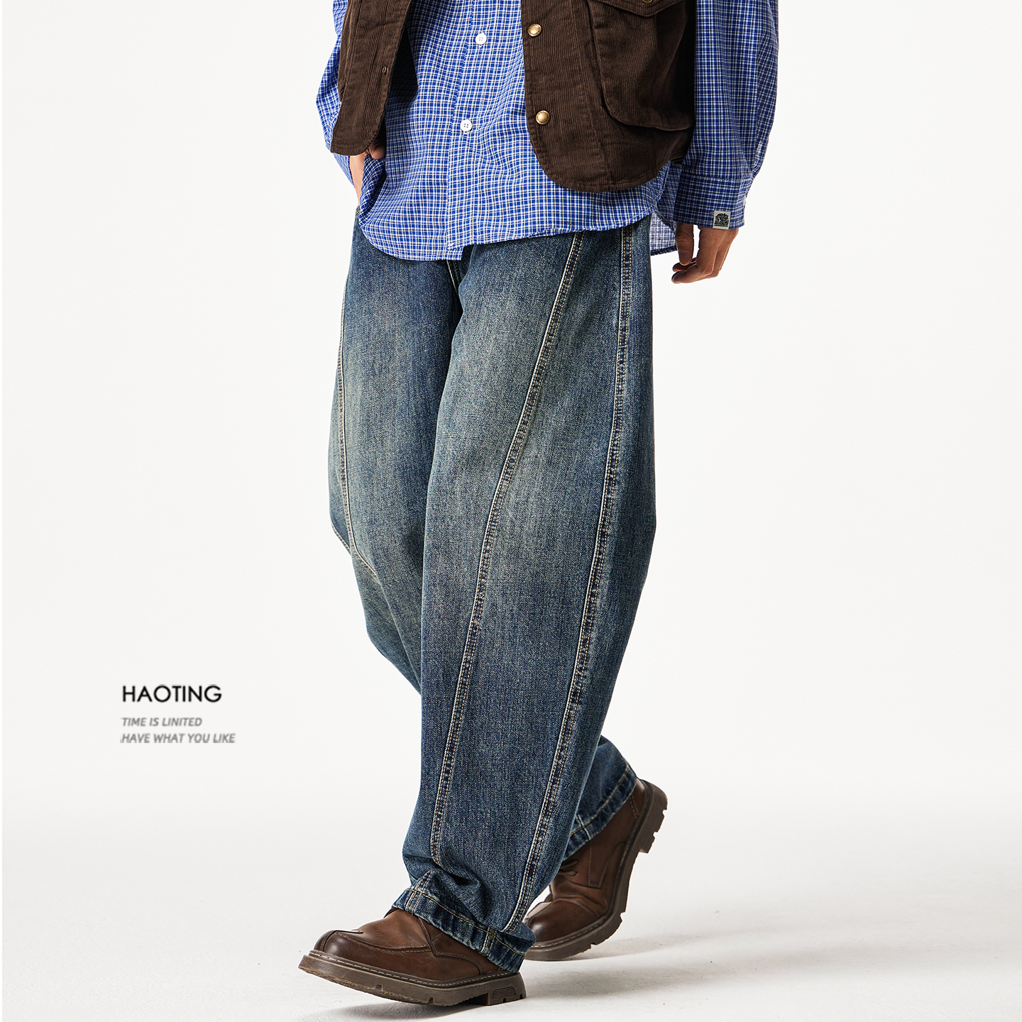 新款 男2025春季 长裤 复古宽松直筒裤 休闲 森柔牛仔 美式 森马牛仔裤