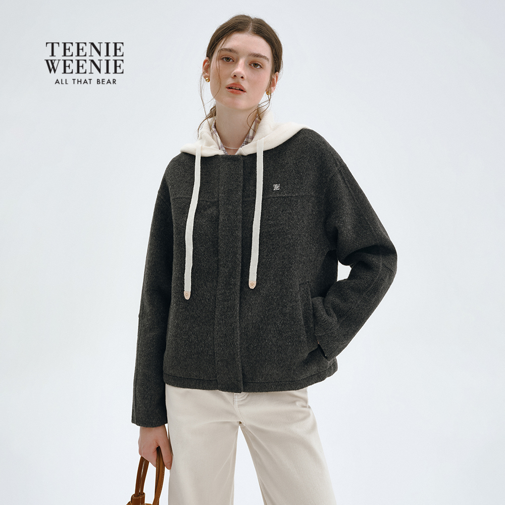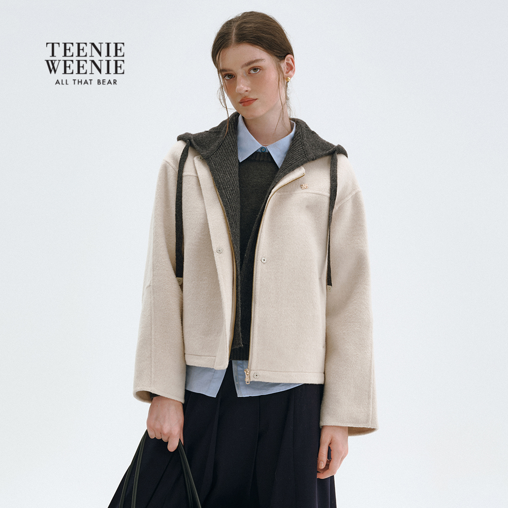 TeenieWeenie小熊女毛呢外套25秋冬连帽大衣 轻绒智型通勤大衣