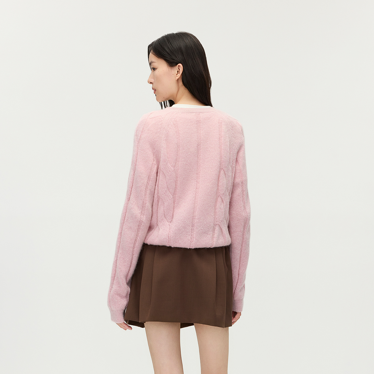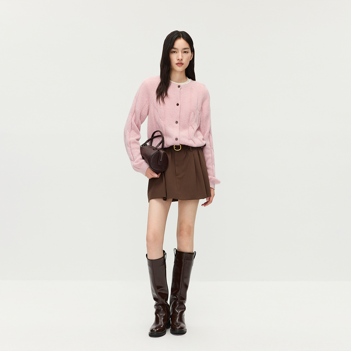 OCHIRLY欧时力羊毛绞花针织外套女圆领开衫 上衣慵懒2025秋冬新品