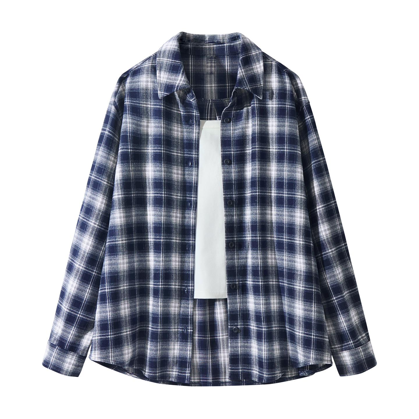 藏青色翻领磨毛男士 班尼路重磅纯棉长袖 2025秋季 男款 衬衣外套 衬衫
