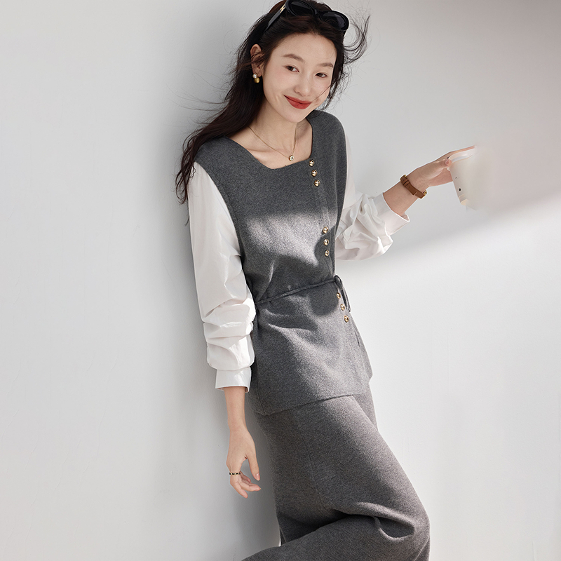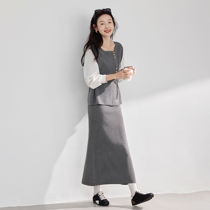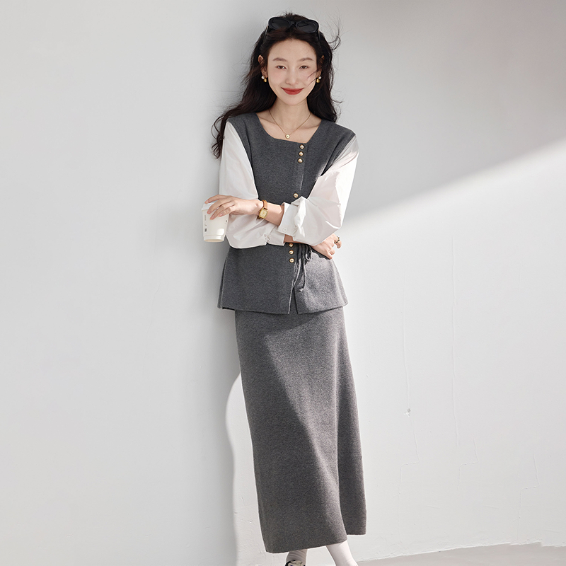长袖 淑女秋季 衬衫 针织裙套装 两件套 苏醒 女士2025年新品 乐园时尚